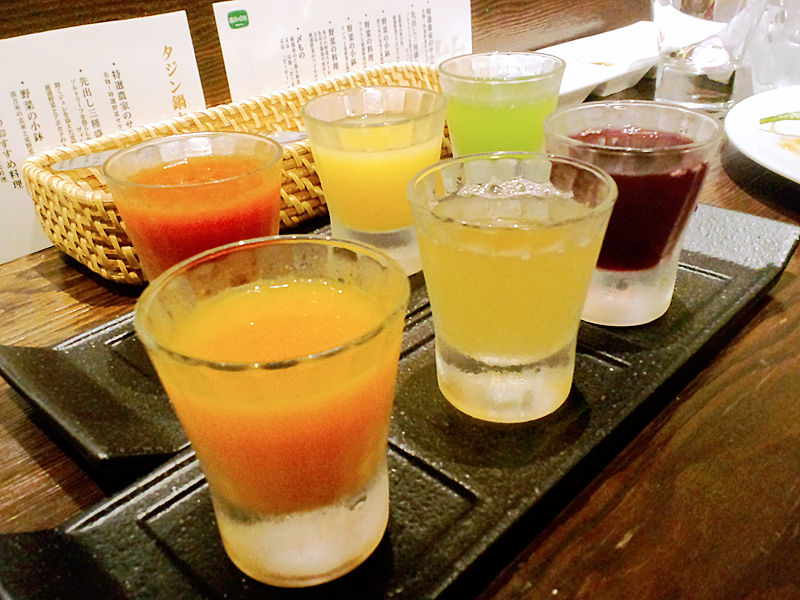 こんな感じに色とりどりの野菜ジュースも飲んじゃったりしてね><